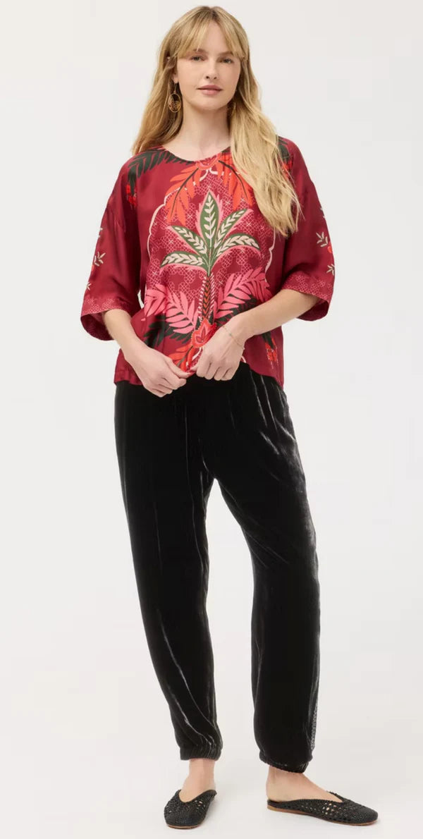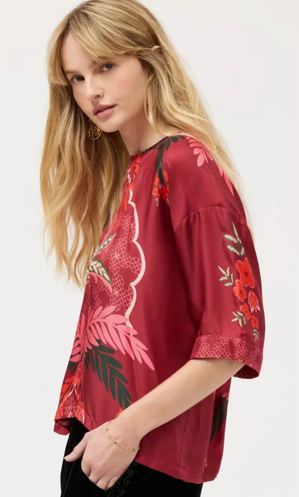 Embellished with a vibrant pattern and eye-catching rich colour, the Arden Oversized Blouse is crafted from a unique silk blend. Designed with a gently rounded neckline and elbow-length sleeves, this unique top offers a relaxed silhouette for a loose fit