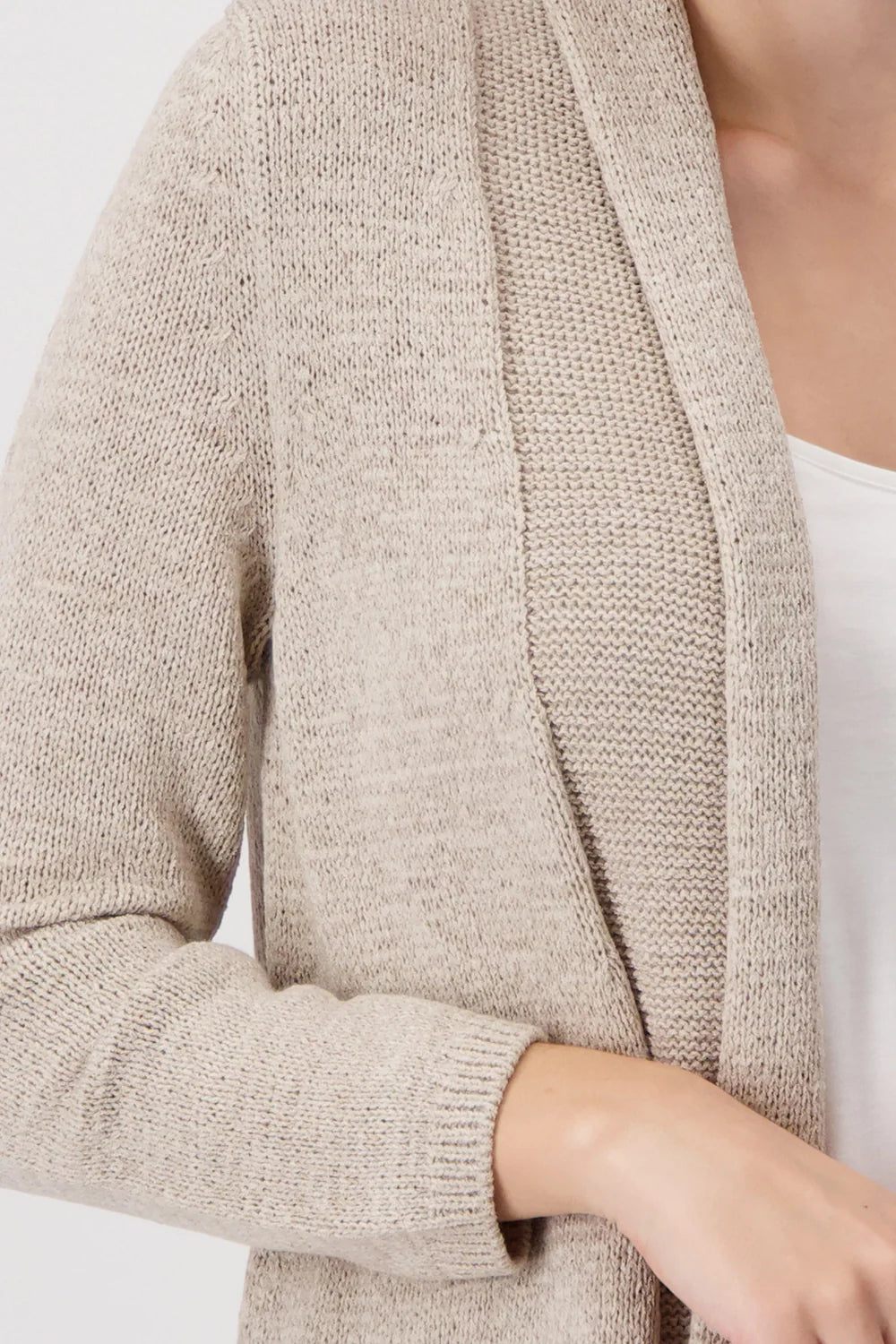 Effortlessly elegant, this Monari open-front cardigan features a soft knit finish with a draped shawl collar. Designed with long sleeves and ribbed trims for comfort and versatility.