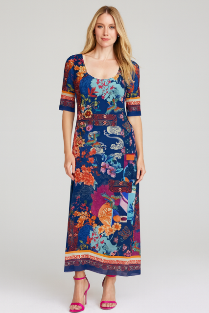 Johnny Was Maya Mesh Midi Dress R39825-O Dreamer Blue