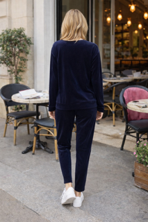 A velvet lounge pant combines everyday comfort with a touch of understated glamour. Made from soft, plush velvet with a subtle sheen, it feels smooth and luxurious against the skin. The fit is relaxed yet flattering, designed to drape beautifully through the leg while allowing ease of movement.