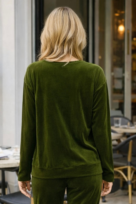 This velvet top feels soft and luxurious, crafted from soft, plush velvet with a gentle sheen, it feels indulgent against the skin while offering effortless comfort.