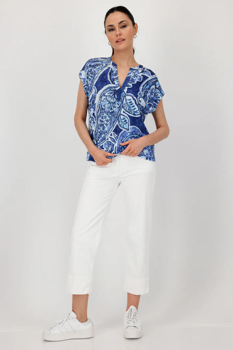 Monari Paisley V Neck Tee 409756 - Blue Paisley