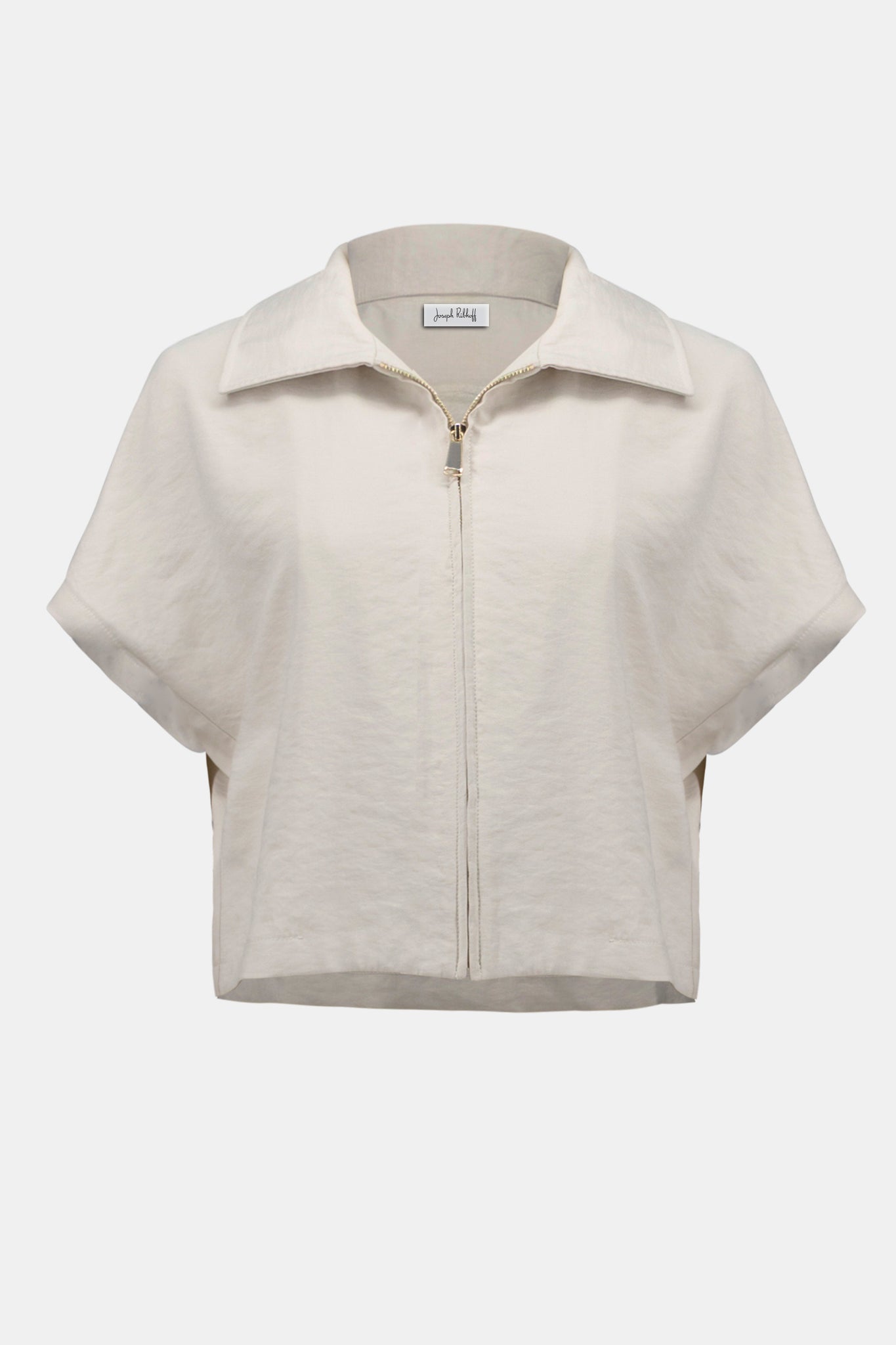 Joseph Ribkoff Recycled Textured Woven Boxy Jacket With Zipper Front 261237 - Moonstone